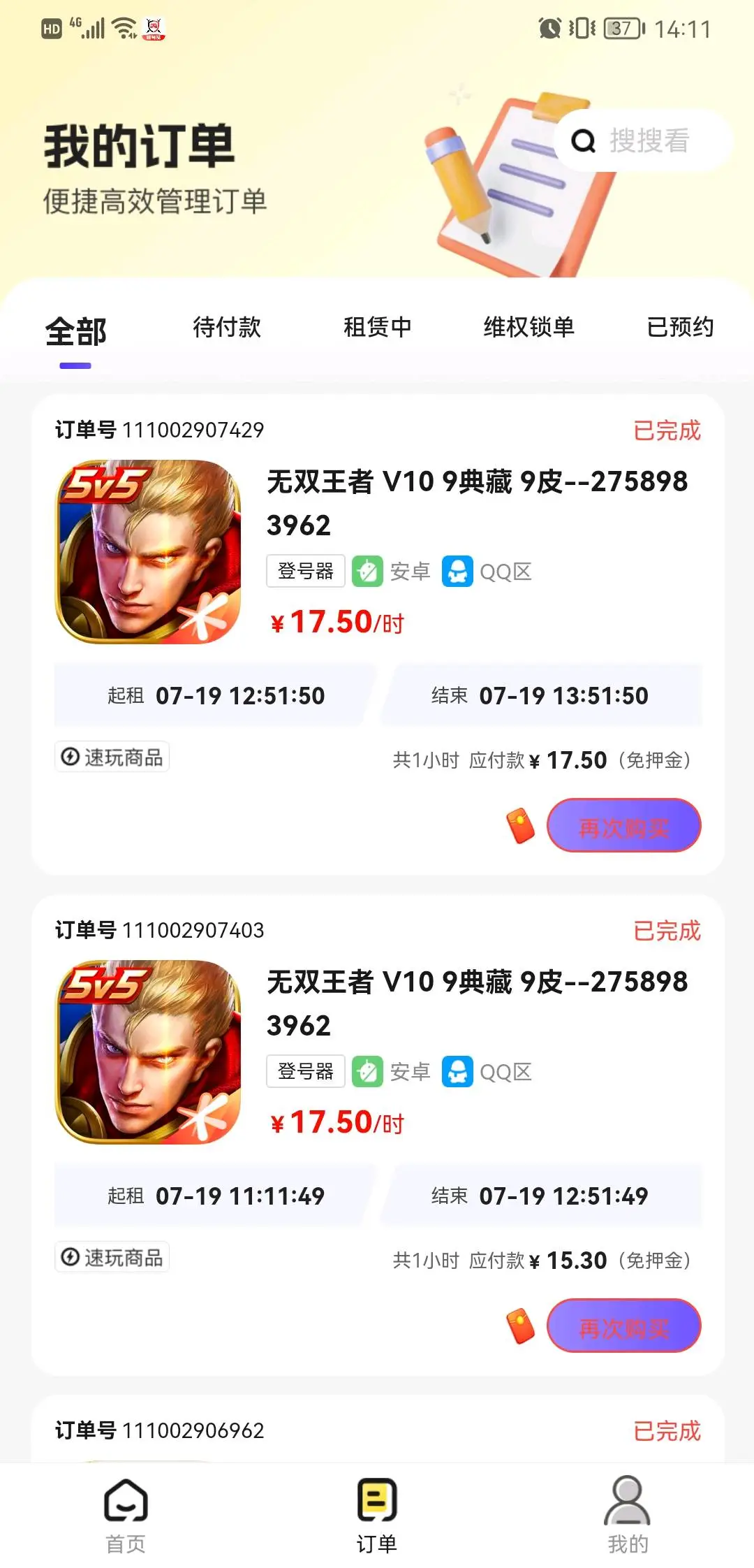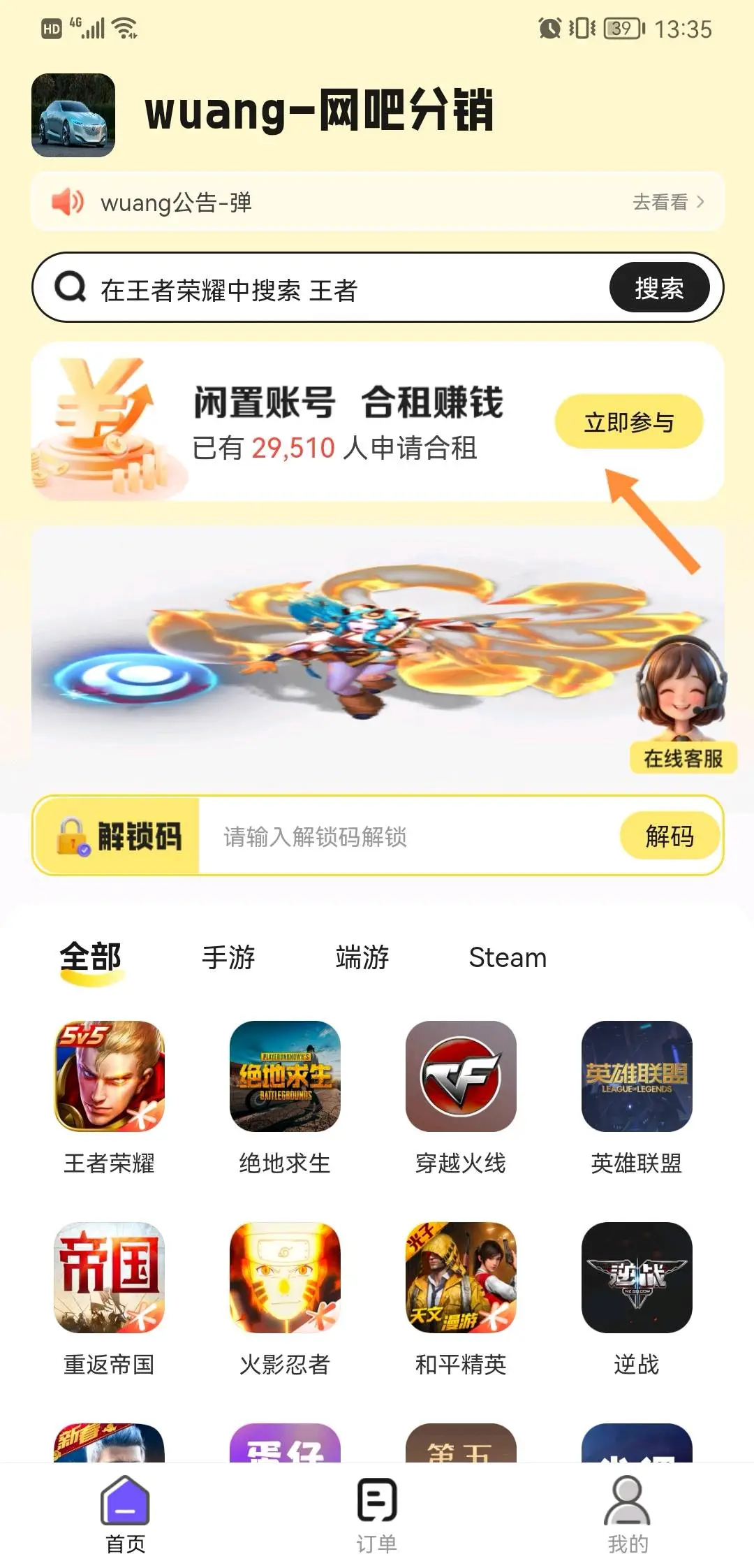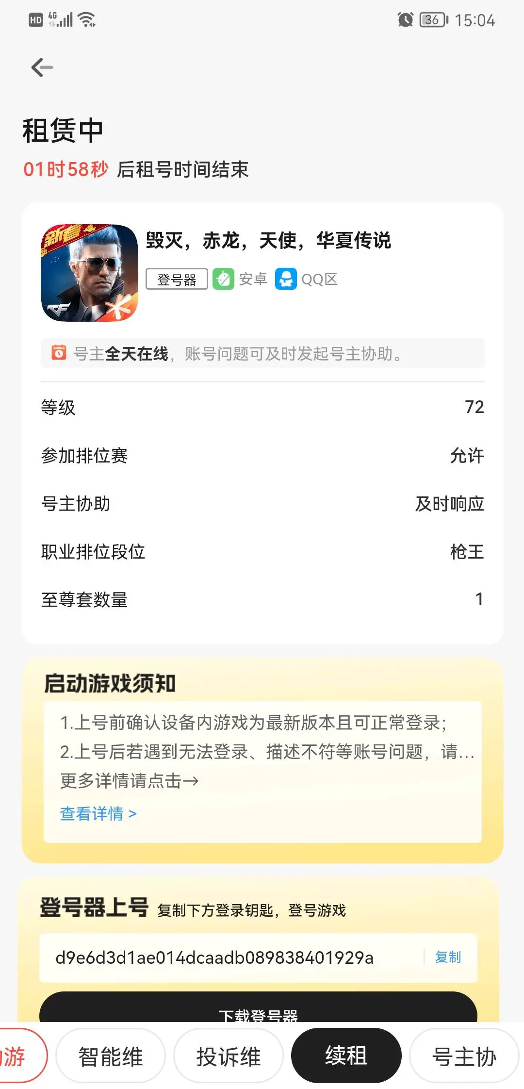 租赁押金:0元(不得使用外挂等第三方软件,违反将会扣除押金)