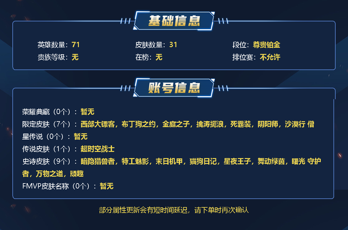 - 典藏皮肤数: 0
