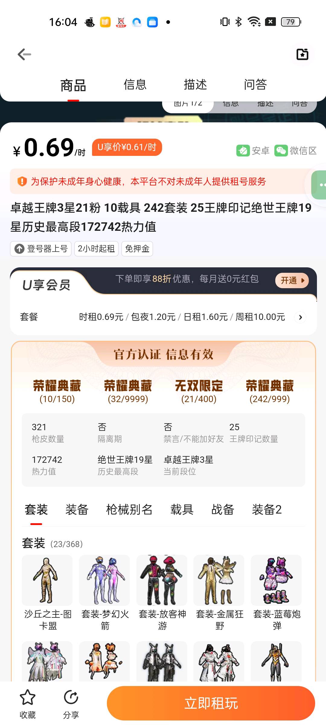 【安卓】 卓越王牌3星21粉 10载具 242套装 25王牌印记绝世王牌19星历史最高段172742热力值